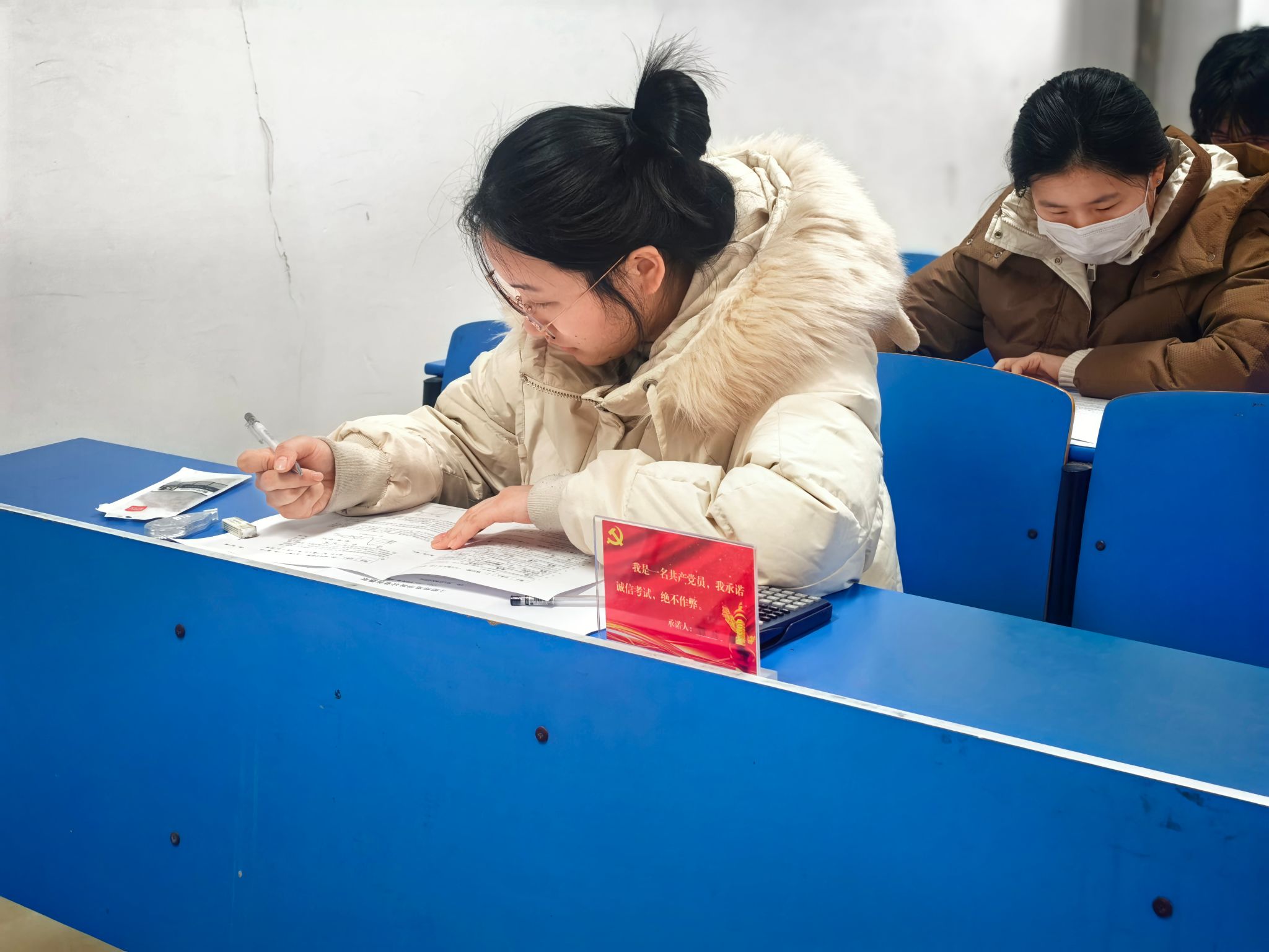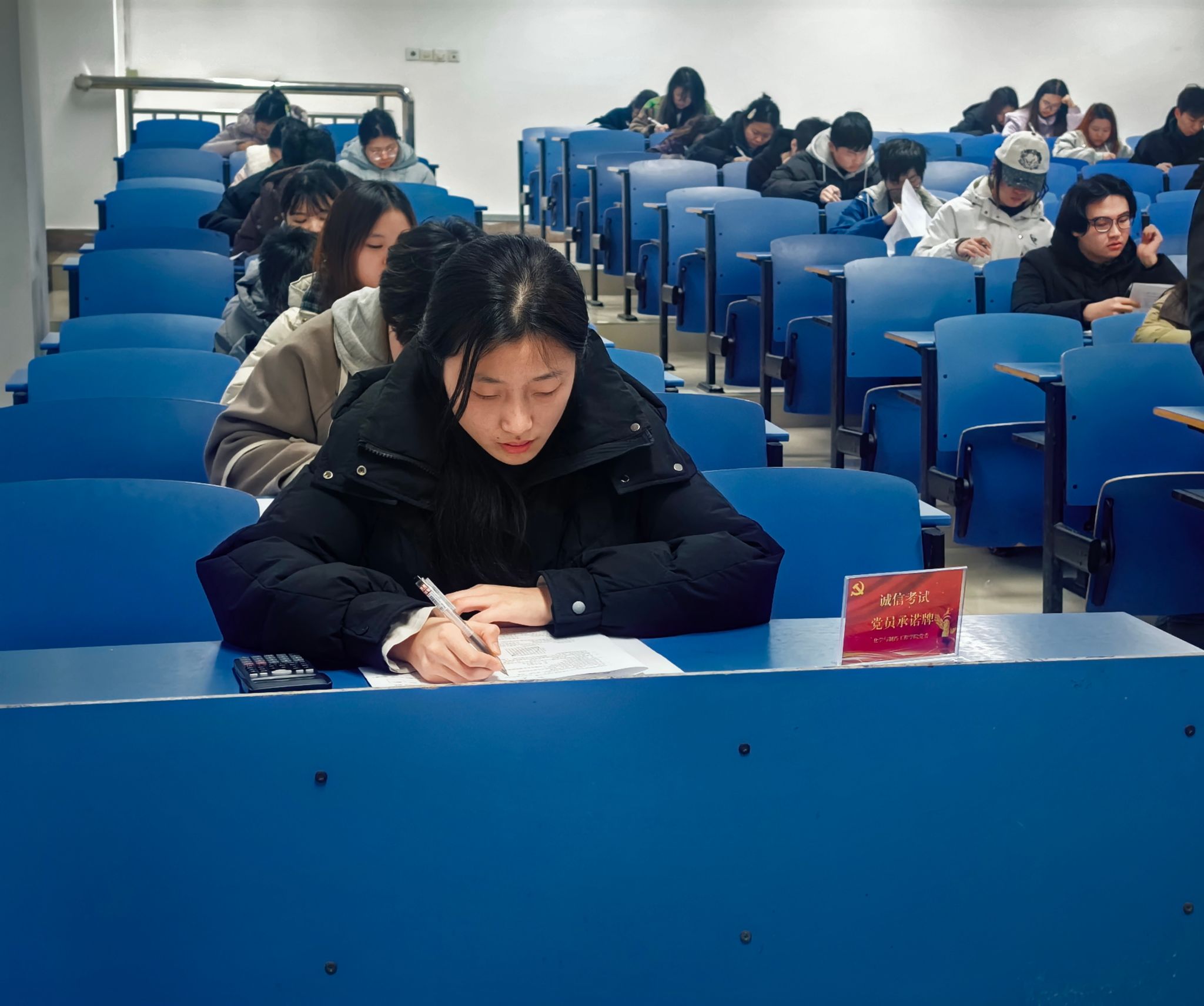 考试期间,全体学生党员按照要求将“诚信考试党员承诺牌”放置在课桌显著位置,主动亮明党员身份,公开接受师生监督,以实际行动践行“诚信考试、绝不作弊”的承诺,成为考场中恪守诚信的“标杆力量”。党员们纷纷表示,考试时时刻以承诺牌为警醒,严格遵守考试纪律,始终把诚信应考的要求内化于心、外化于行。
